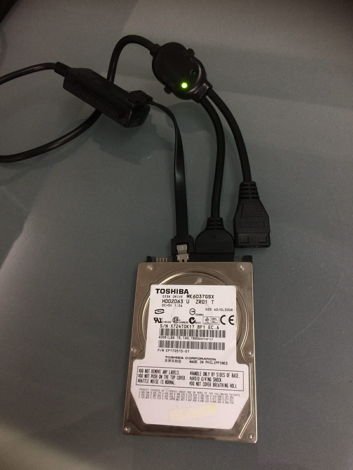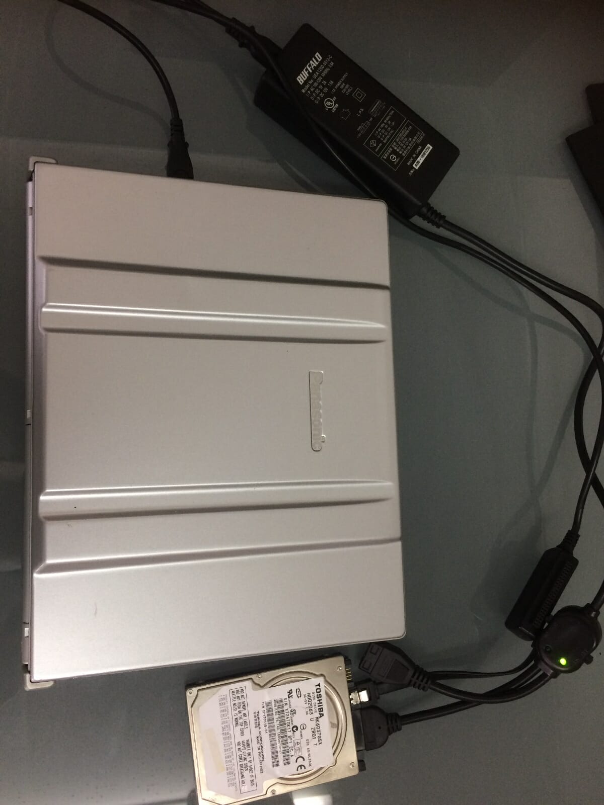 1.故障中のHDDをUSB変換アダプタを用い、作業用PCに接続します。