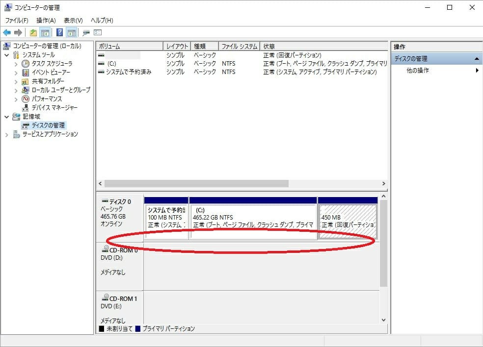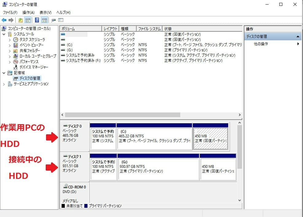 この場合はディスク1の接続しているHDDが不明となりながらもパソコンに認識している状態です。